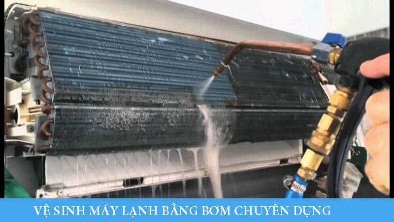 - Vệ sinh xịt rửa dàn lạnh, dàn nóng bằng vòi xịt chuyên dụng