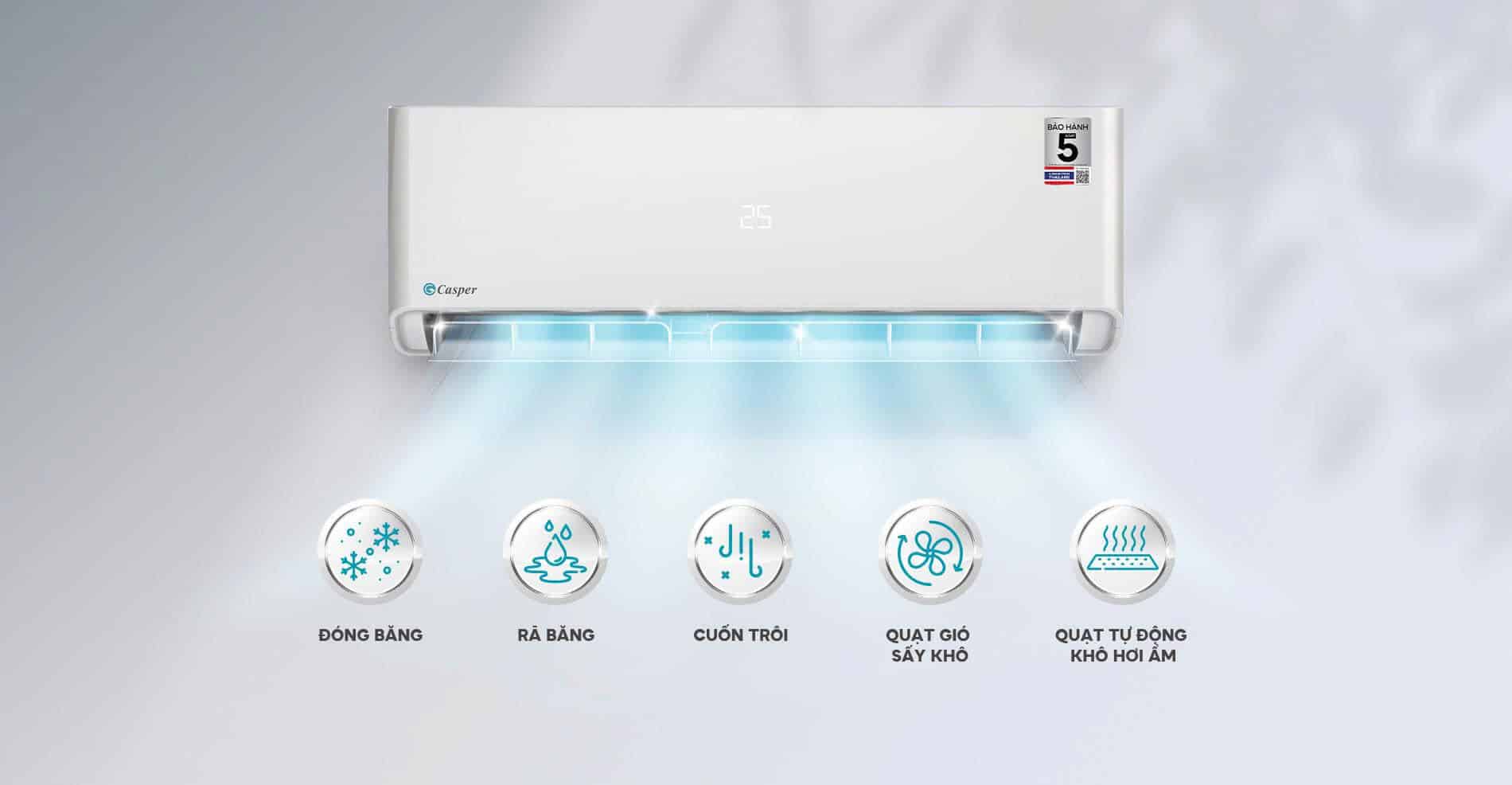 Điều hoà dân dụng Casper được nhập khẩu nguyên chiếc từ Thái Lan, với chế độ bảo hành máy nén 5 năm, giúp người dùng yên tâm về chất lượng và độ bền trong thời gian dài sử dụng