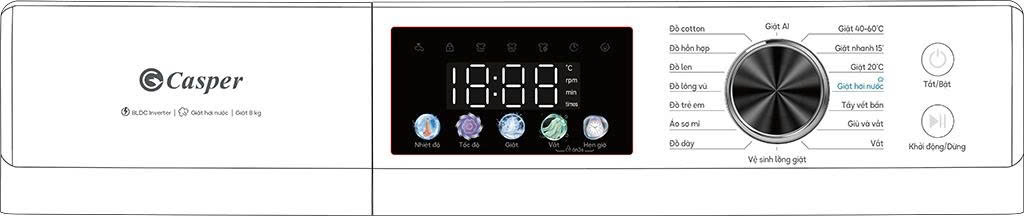 Máy giặt Casper hỗ trợ chế độ giặt đa dạng, từ giặt nhanh đến giặt chuyên sâu, mang đến giải pháp hoàn hảo cho mọi loại quần áo của gia đình bạn.