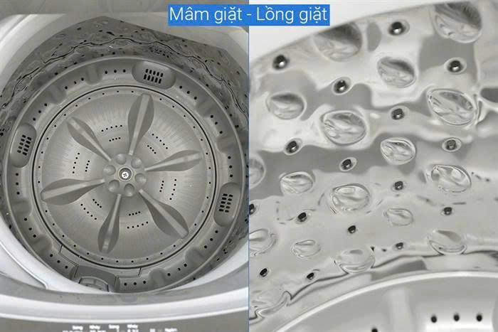 Lồng giặt bằng thép không gỉ bền chắc suốt quá trình sử dụng cùng thiết kế hình giọt nước giúp lồng giặt tác động lên quần áo nhẹ nhàng như giặt tay, vừa giặt sạch vừa hỗ trợ bảo vệ quần áo tối ưu.​