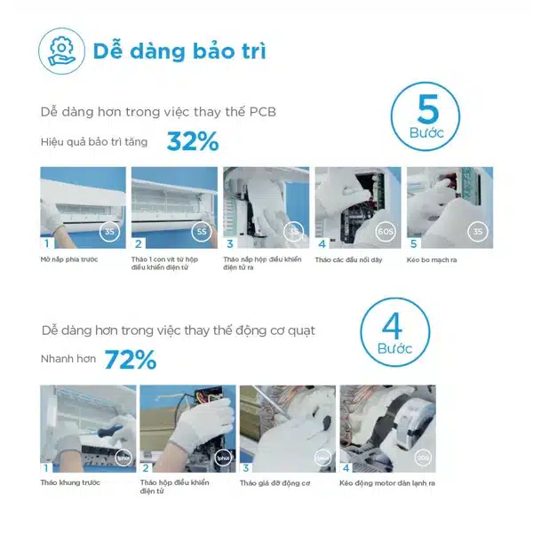 - Tự làm sạch: Hệ thống tự làm sạch giúp duy trì hiệu suất hoạt động và giảm thiểu việc bảo trì định kỳ.