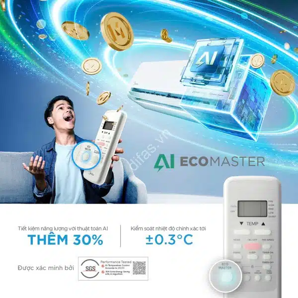 - Chế độ Eco: Tối ưu hóa mức tiêu thụ điện năng mà vẫn duy trì hiệu quả làm mát và sưởi ấm ổn định.