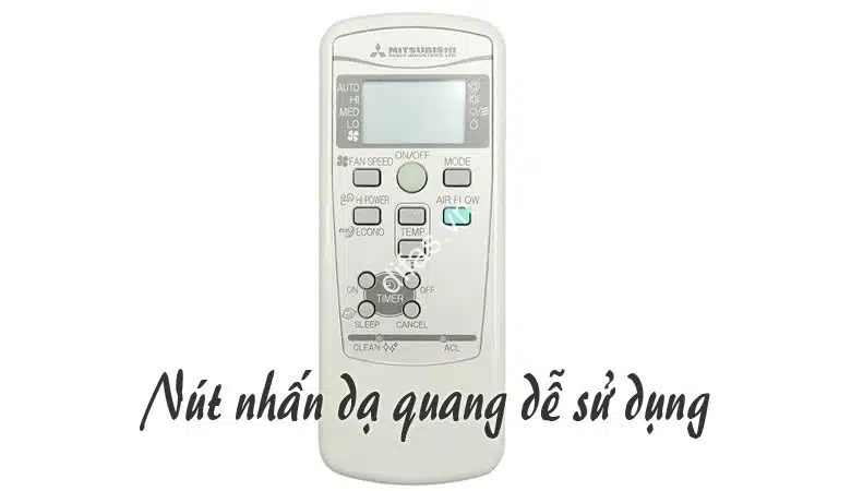 Bộ điều khiển từ từ xa với nút bấm dạ quang tự phát sáng tiện lợi cho người sử dụng trong phòng tối.